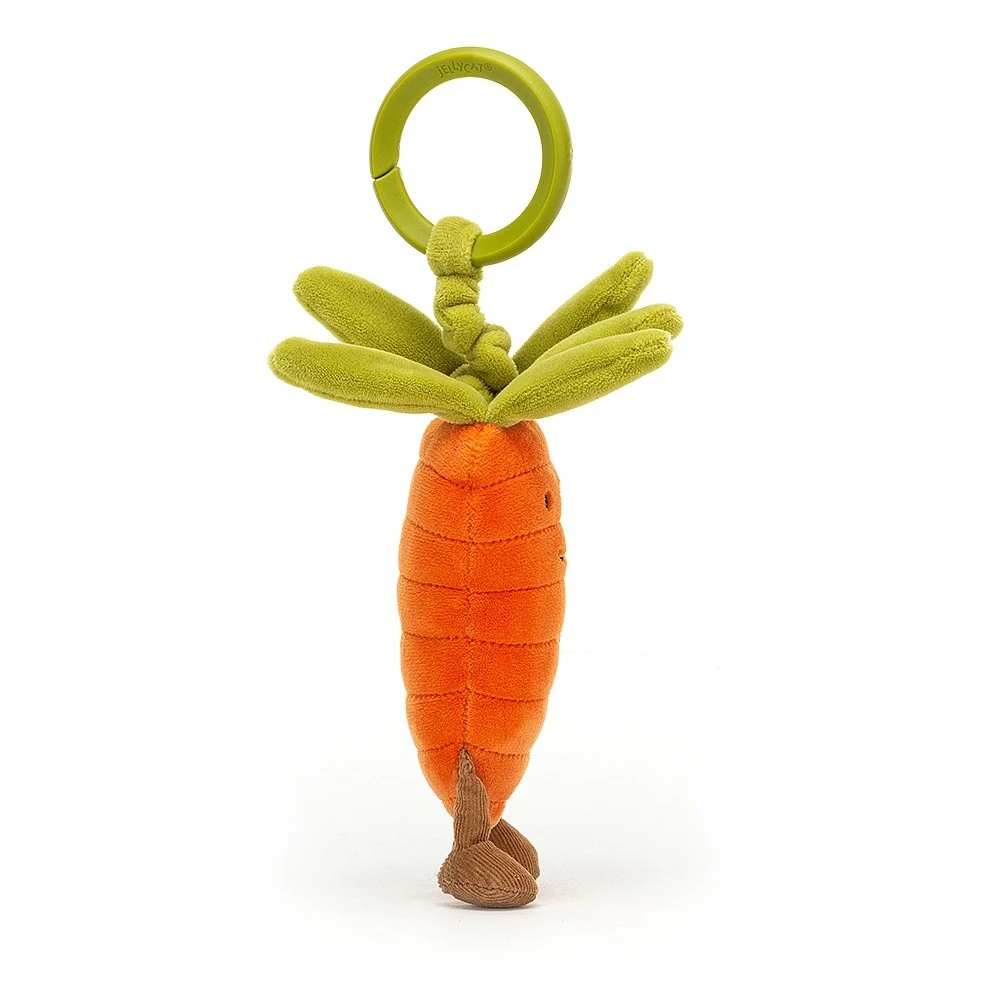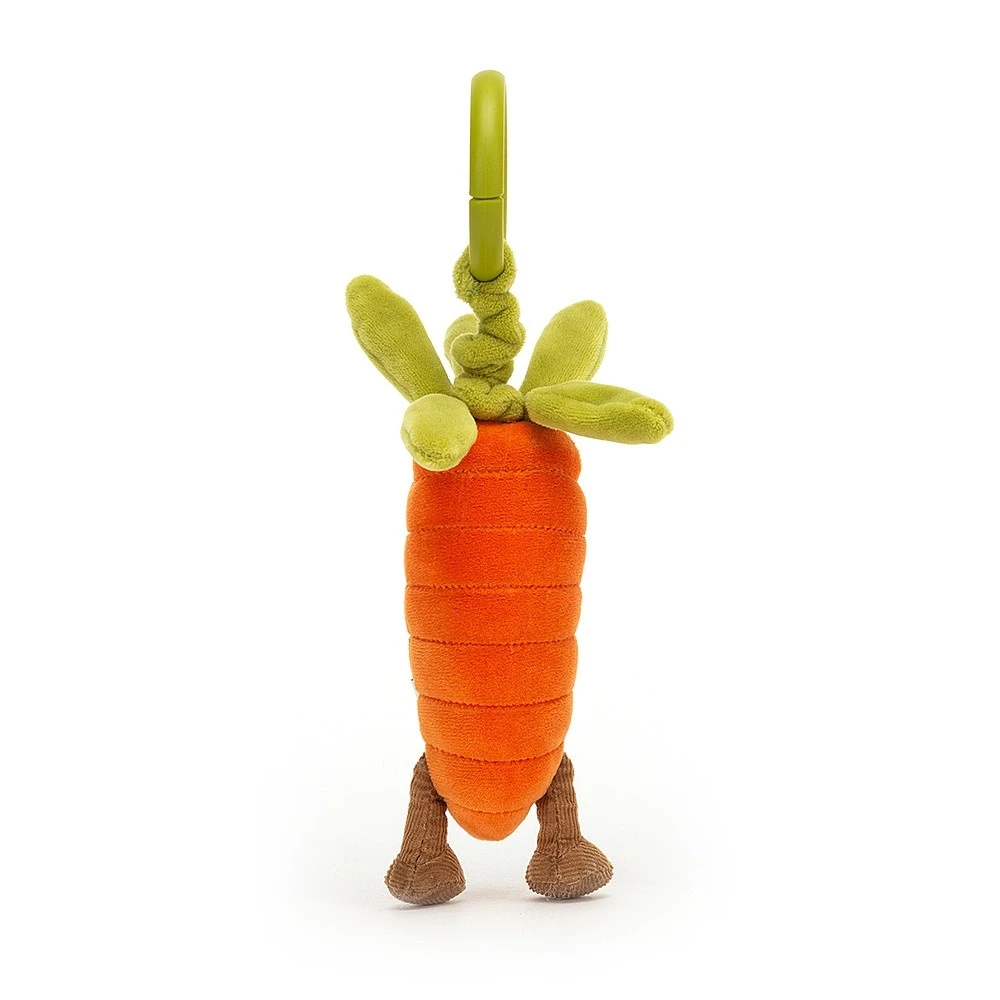 Vivacious Vegetable Carrot Jitter van Jellycat zal voor veel plezier zorgen. Door de handige ring kun je deze wortel gemakkelijk aan de buggy bevestigen.