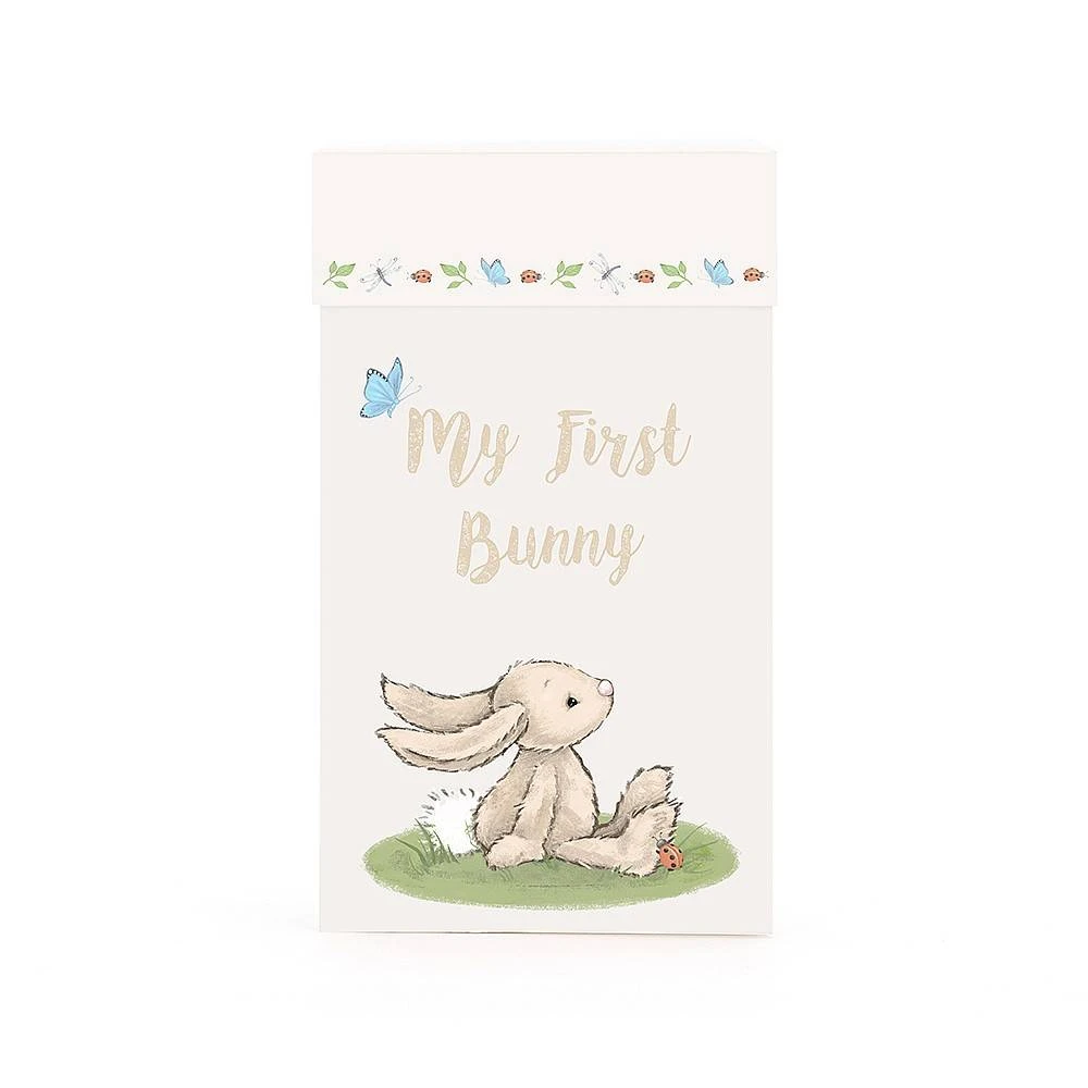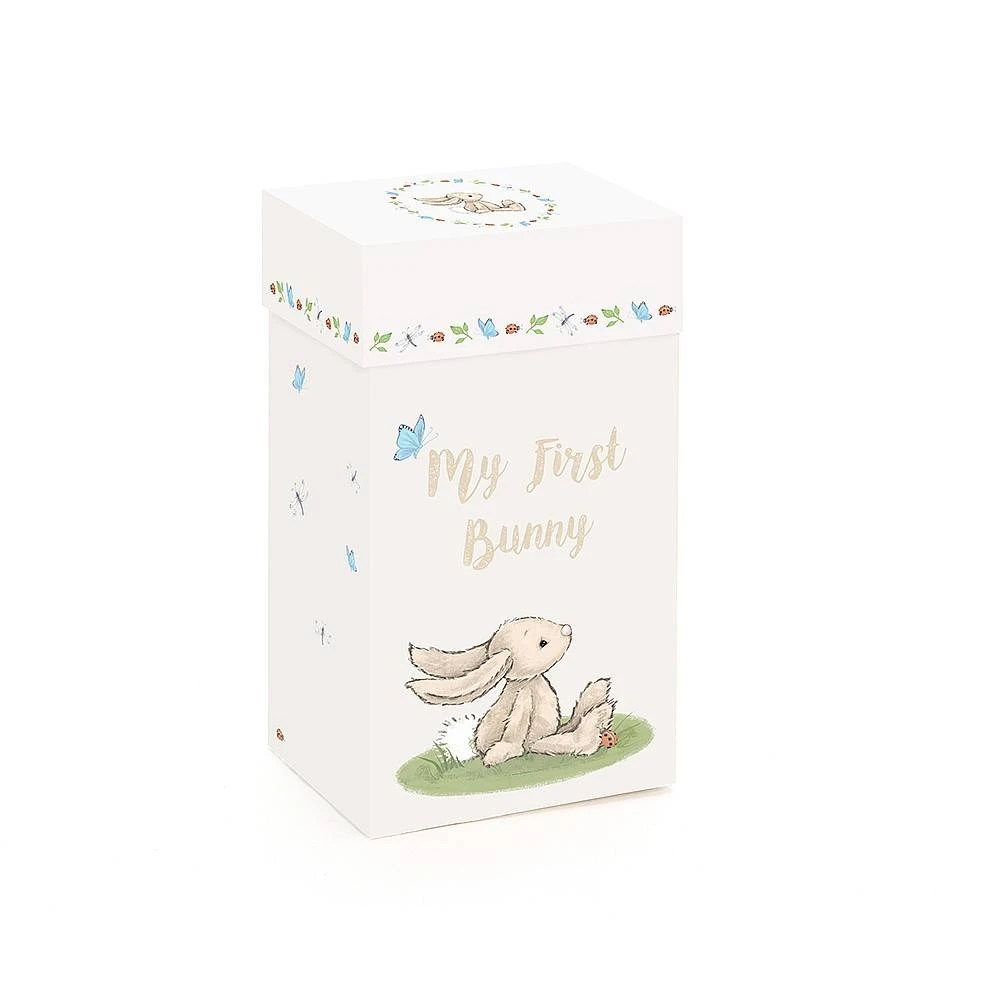 My first bunny van Jellycat is een heel mooi kraamcadeautje. Dit lieve knuffelkonijn wordt geleverd in een mooie geschenkverpakking. Het konijn is knuffelzacht en heeft grote hangende oren. Hoogte: 19 cm.