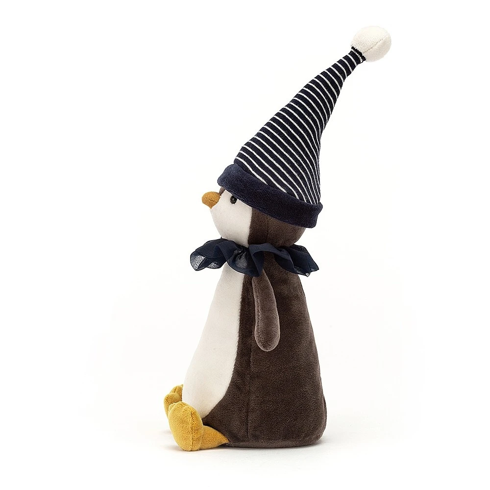 Yele Penguin van Jellycat kan nauwelijks stilzitten, zo spannend vind ze het allemaal! Ze heeft een mooie muts op en sjaal om. De knuffel pinguin is inclusief muts 34 cm hoog.